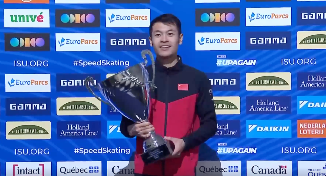北京时间4日,2023—2024赛季国际滑联速度滑冰世界杯魁北克站,中国选手宁忠岩获男子1500米年度总冠军。