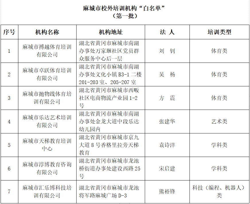 为进一步规范麻城市校外培训机构培训行为,麻城公布第一批校外培训机构“白名单”。