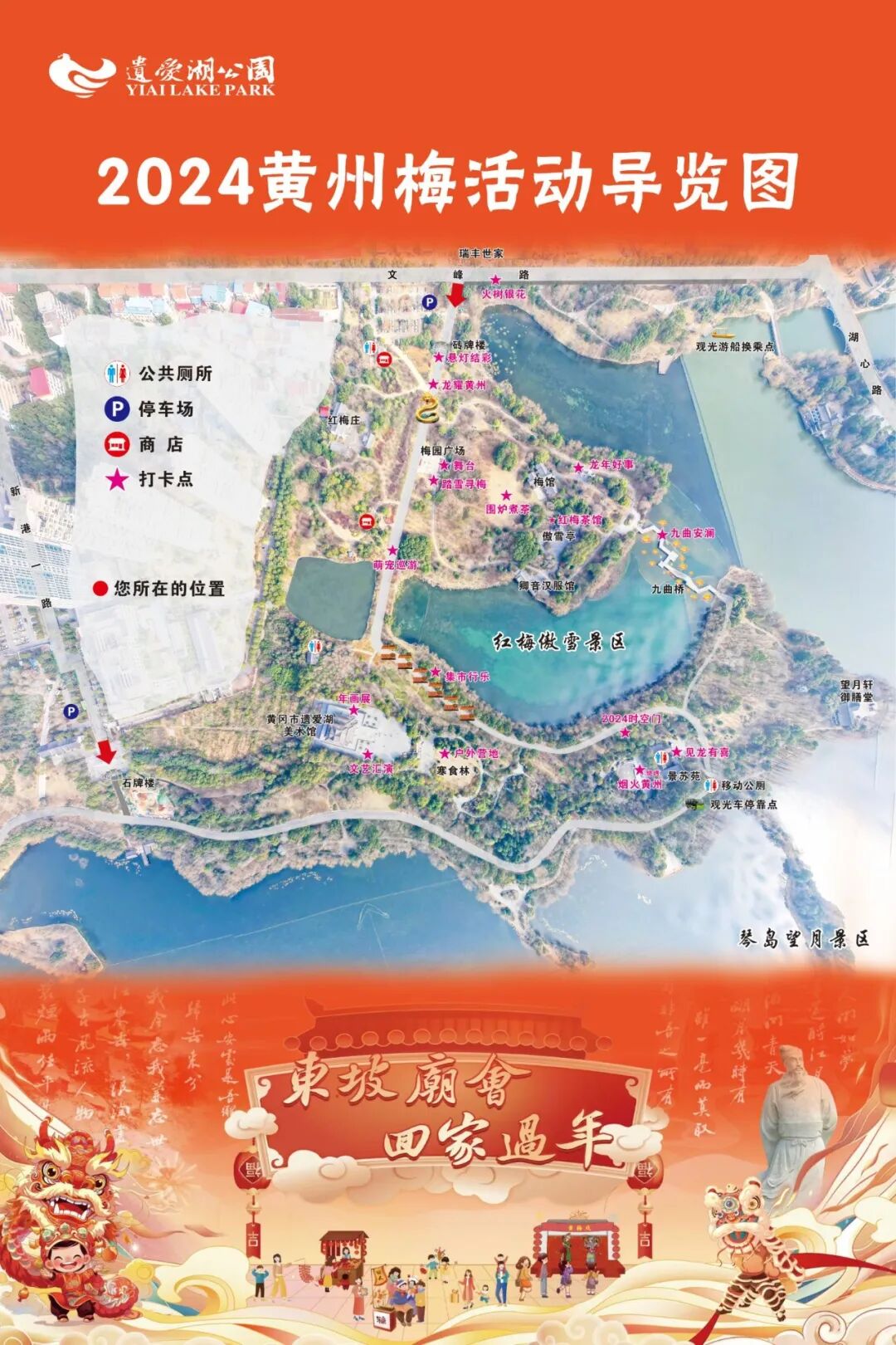 东坡庙会 回家过年由黄冈市东坡文化旅游区管理中心举办的2024黄州梅活动即将龙重登场龙耀黄州、见龙有喜、龙年好事、踏雪寻梅、火树银花、悬灯结彩、九曲安澜、时空隧道、萌宠巡游、围炉煮茶、烟火黄州、文艺汇演、精彩多多......