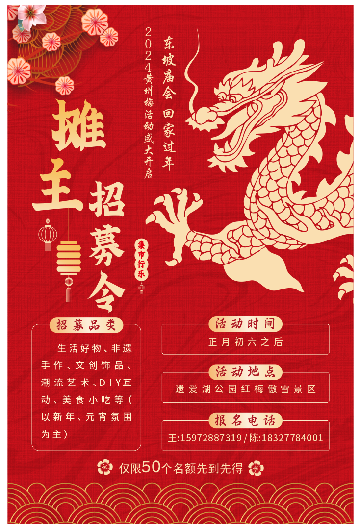 小摊儿已就位现就梅花节集市全城招募摊主生活好物、非遗手作、文创饰品潮流艺术、DIY互动、美食小吃......只要你有项目,请向我们靠“龙”