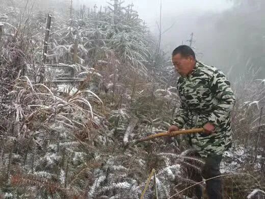 杨明成,1947年1月生,罗田县凤山镇二郎庙村村民,从青丝到白发,坚守大山半生,开荒不停,造林不止,挖断30多把锄头和铁锹,植树2万余棵,拓荒百余亩,带动100多位村民开荒种树。一肩一锄,一步一印,躬身荒山绘就满目葱茏,40年的光阴,这位朴实无华的老人终将濯濯童山变成了如今的绿树阴浓。