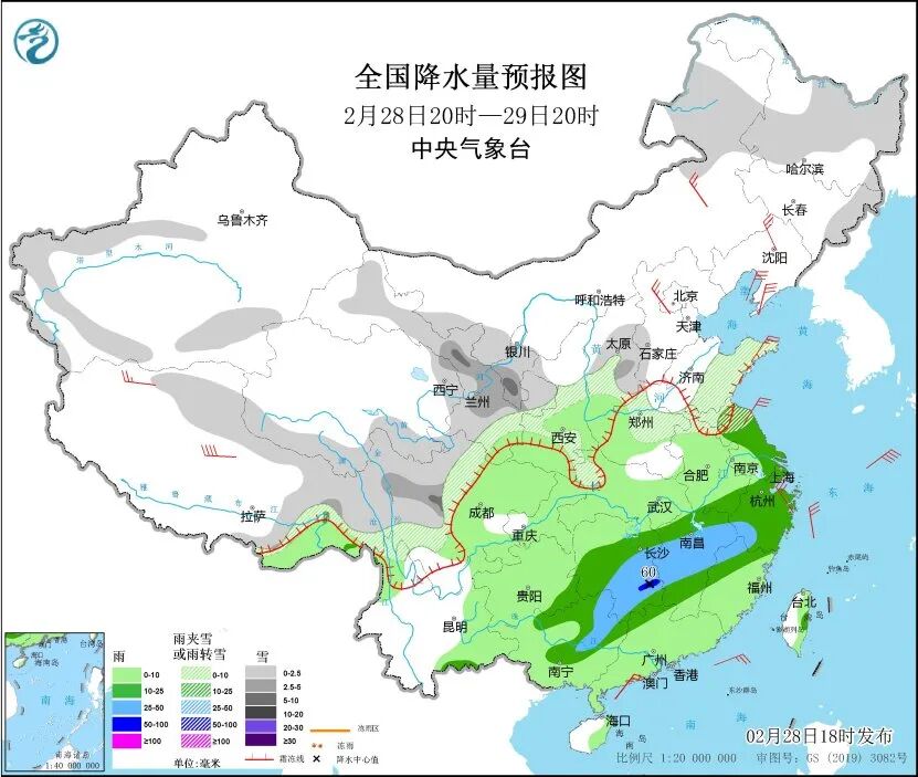 中央气象台预计,28日20时至29日20时,内蒙古东北部、东北北部和东部、西藏东部和北部、青海东部和南部、川西高原北部、西北地区东部、华北西部、黄淮中东部等地的部分地区有小到中雪或雨夹雪,其中甘肃中部、宁夏南部、川西高原北部等地的部分地区有大雪。江淮东部、江南、贵州东南部、华南北部等地的部分地区有中到大雨,其中湖南南部等地局地有暴雨。