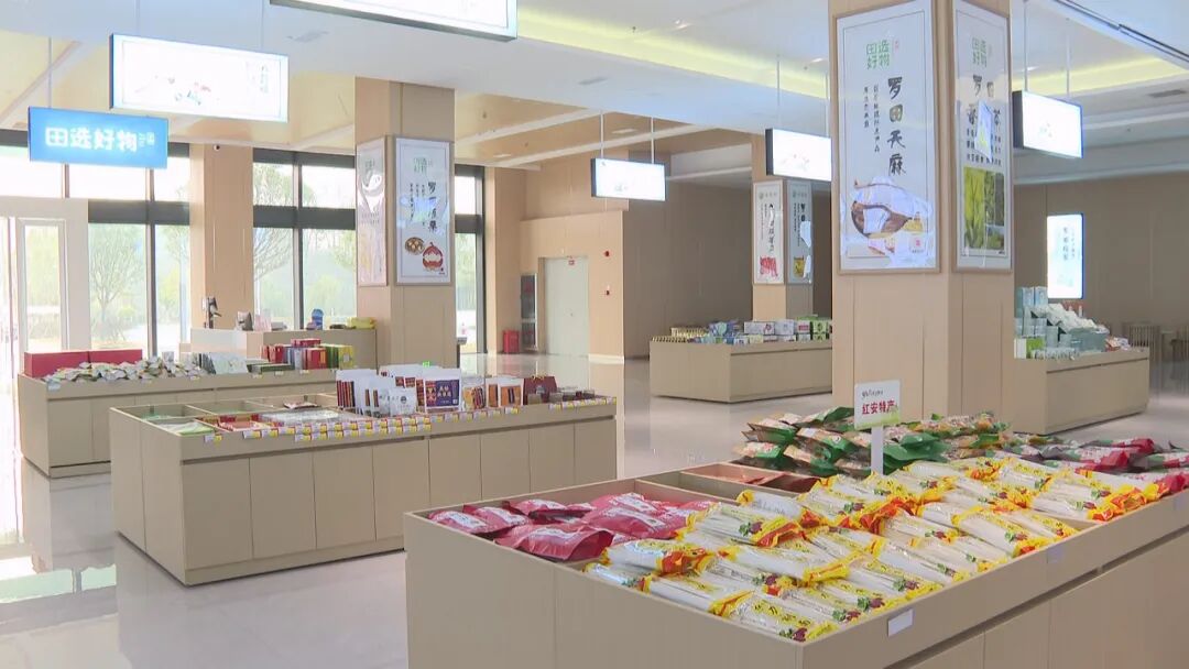 在农业智慧园地标优品销售展示中心,各种特色的农产品琳琅满目,摆放得整整齐齐,吸引了不少的市民前来购买。罗田县特色农产品供应链有限公司总经理 周智勇 我们展厅里面目前现有产品437款,入驻商家67家,实现销售额1500万元,罗田整个农特产品和当地的一些产品深加工企业的产品都是通过我们这个平台对外进行销售。