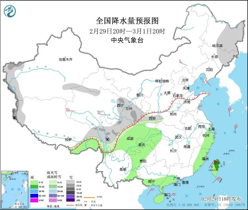 中央气象台预计,2月29日20时至3月1日20时,东北地区东部、新疆南疆西部山区、西藏西部、青海东部、川西高原等地部分地区有小雪或雨夹雪,其中,新疆南疆西部山区、西藏西部、川西高原等地部分地区有中雪,西藏西部等地局地大到暴雪。