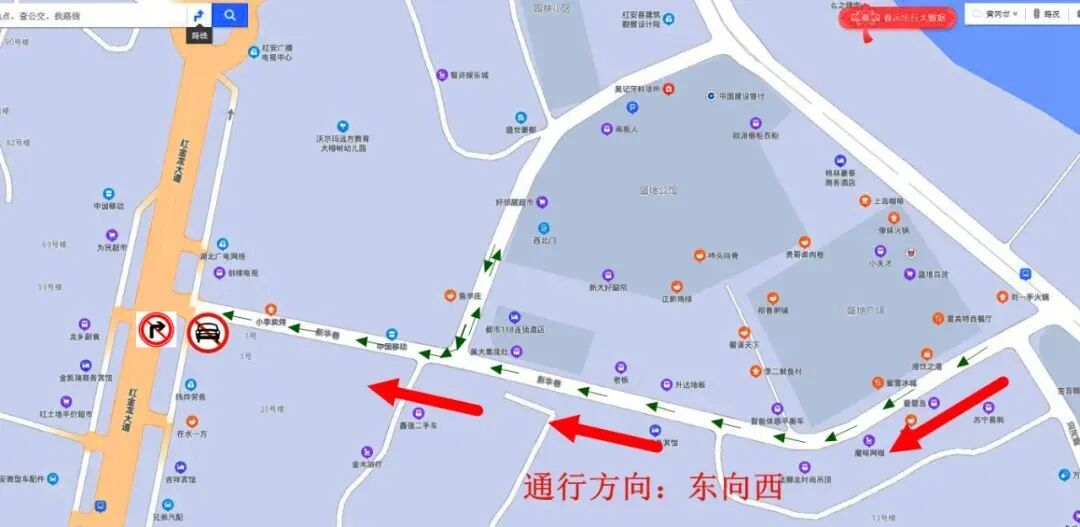 为更好维护城区道路交通秩序,优化道路通行环境,1月18日至1月26日,红安城区新华巷(沃尔玛)路段春节期间实行临时单向通行。