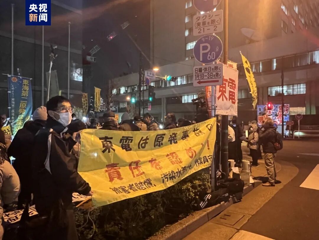 当地时间11日,百余名日本民众在东京电力公司本部大楼前举行抗议集会,要求日本政府立即停止将福岛第一核电站的核污染水排放入海。