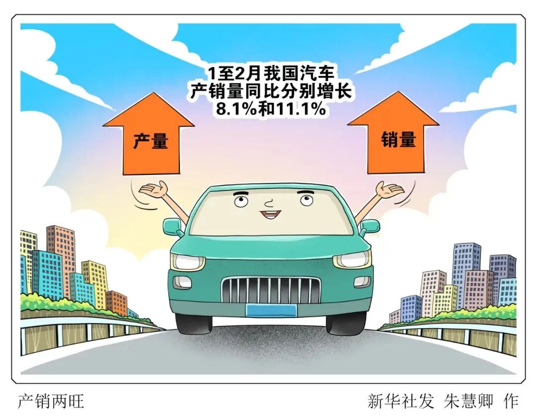 1至2月我国汽车产销量同比分别增长8.1%和11.1%。