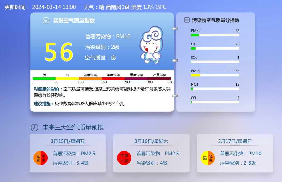 据北京环境监测网站14日13时数据,未来三天北京或有轻度至中度污染。