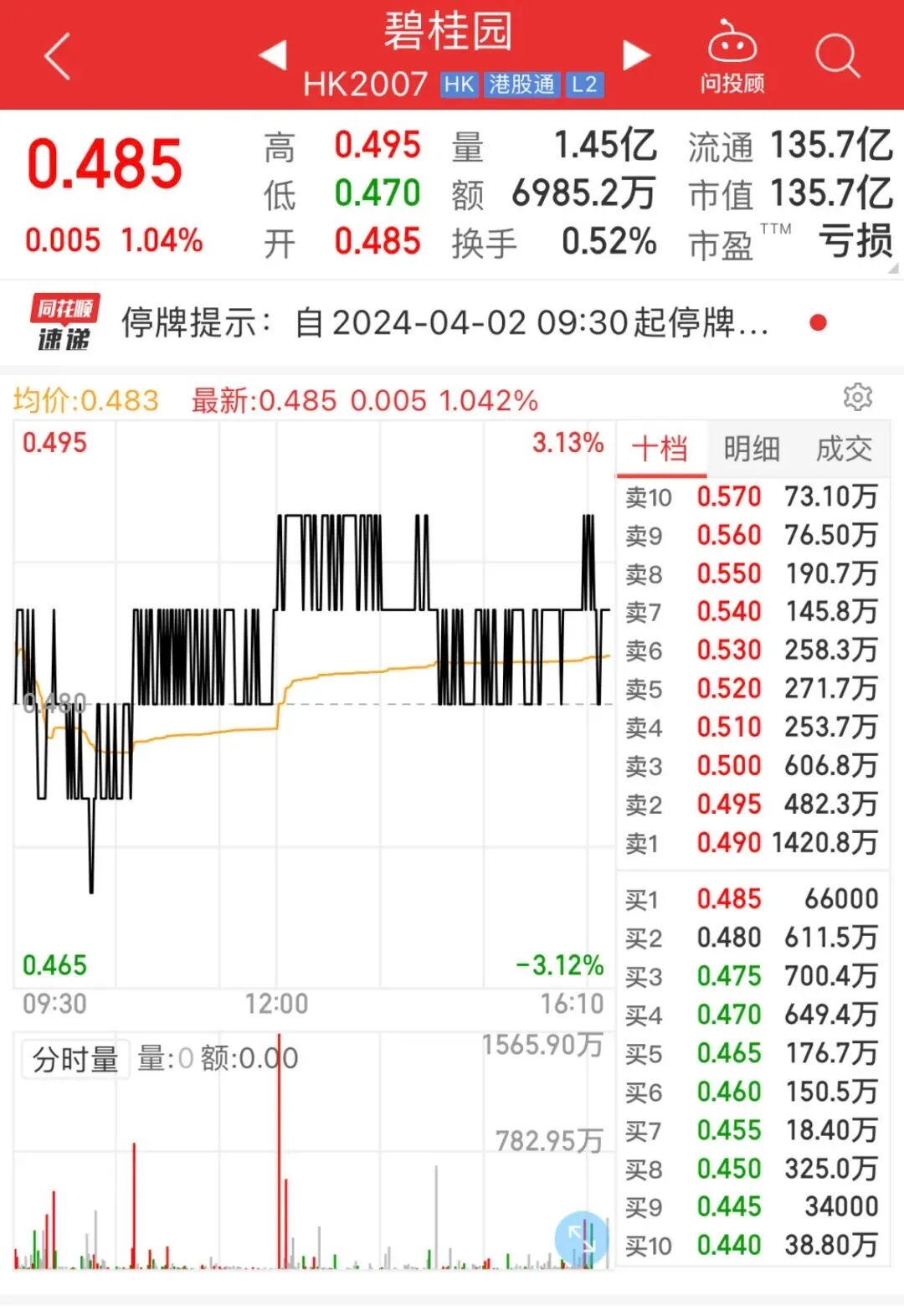 根据上市规则相关规定,若碧桂园无法于2024年3月31日或之前公布2023年度业绩,预计碧桂园的股份将于4月2日上午9时正起暂停在香港联交所买卖,以待刊发2023年度业绩的公告。