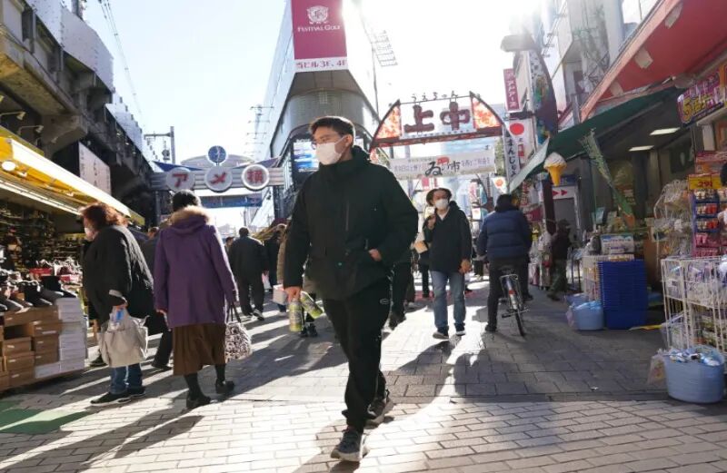 2021年12月28日,人们在日本东京阿美横町购买促销商品。 新华社发(克里斯托弗·朱摄)