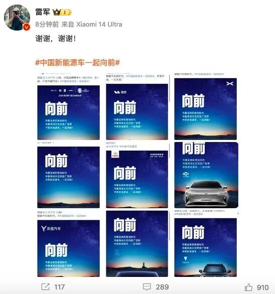 同时,比亚迪、长城汽车、理想汽车、小鹏汽车等多家新能源车企在官方账号发文,欢迎小米汽车入场。对此,小米董事长雷军回应,“谢谢,谢谢!”