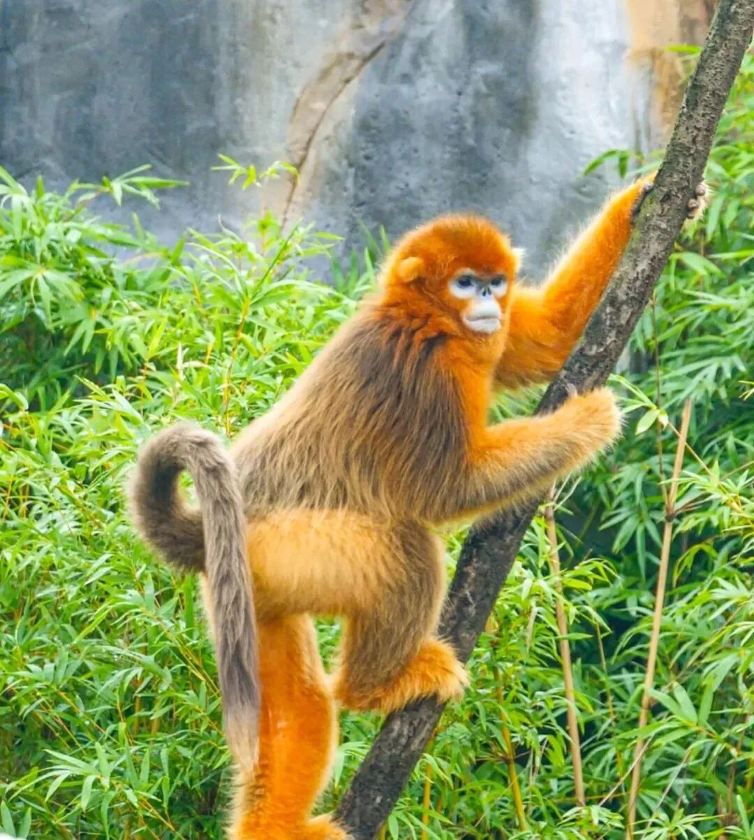 川金丝猴刚出生时并非金黄色,而是灰黑色的,等到它快8个月、乳牙长好后,才会换成金毛。