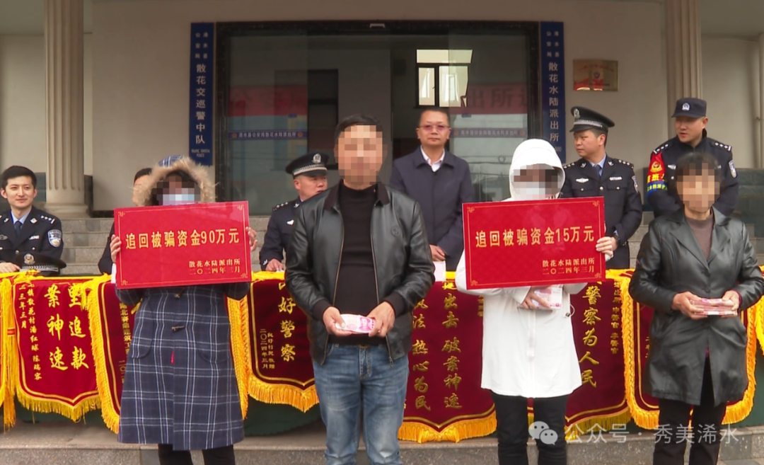 3月28日,浠水县公安局散花水陆派出所举行退赃大会,向前期侦破的多起诈骗、盗窃案件受害人退还了被骗被盗财物共计112万余元。
