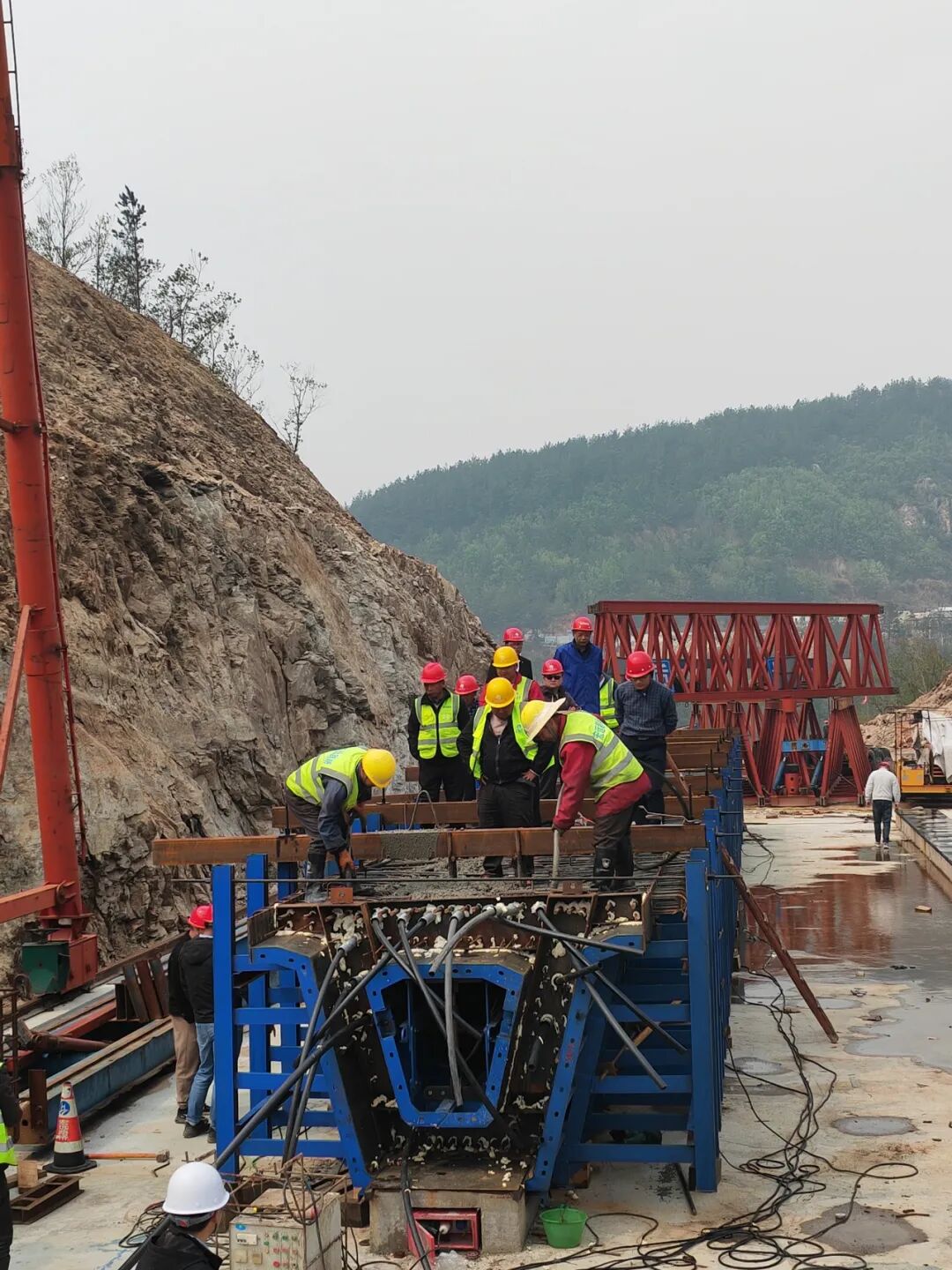 为确保本次箱梁顺利浇筑,项目部严格按照“品质工程”的标准及要求,组织专家评审会,对施工方案进行修改完善。同时,严把方案审查质量管理,确保钢筋加工、预应力管道、模板安装等工序自检合格,对生产、技术、质量、安全等开展全方位把控。在浇筑过程中,项目负责人靠前指挥、掌控全局,建设者们各司其职、规范操作,技术员、安全员紧盯现场、排查隐患,确保箱梁浇筑成品内实外美,符合各项参数要求。