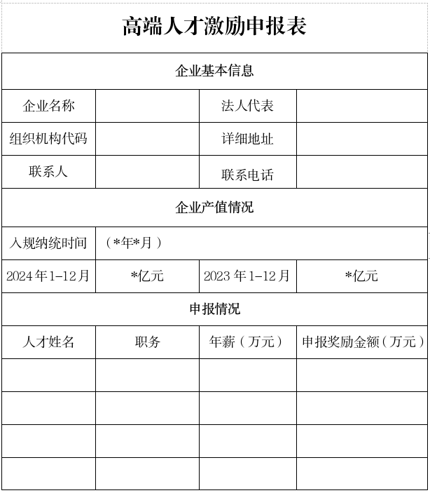 ①高端人才激励申报表;