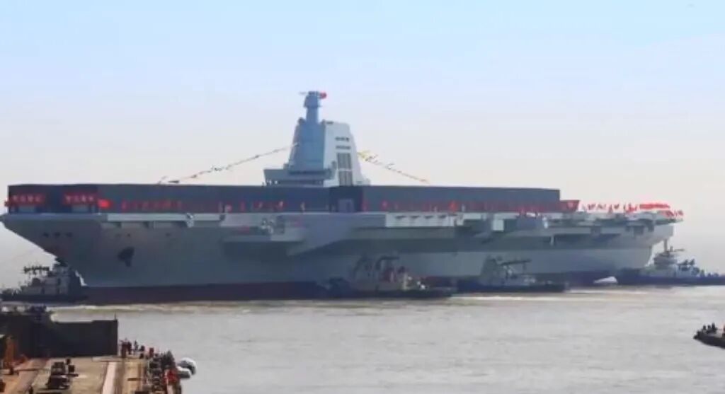 使用无人机近距离拍摄在建航母