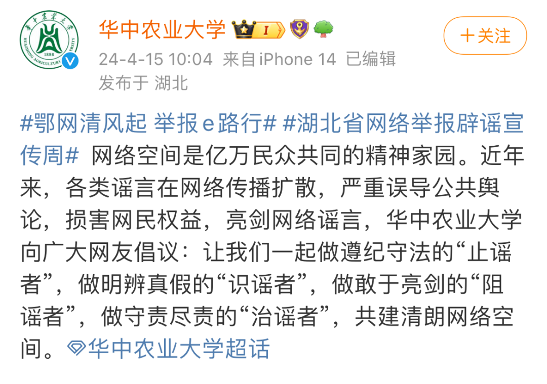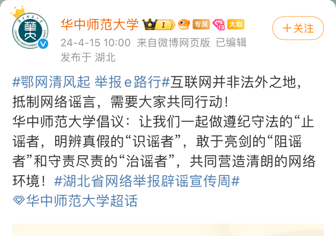 其中#湖北省网络举报辟谣宣传周#