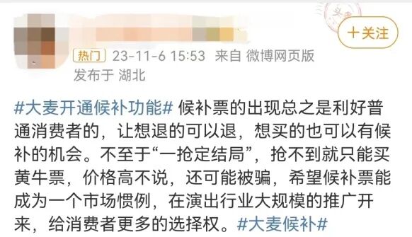 事实上,早在2023年11月,大麦网就因候补门票手续费引发广泛争议。