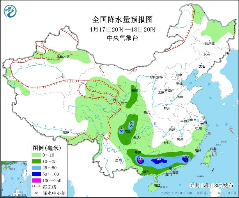 中央气象台17日18时继续发布强对流天气黄色预警:预计17日20时至18日20时,广西西部等地部分地区有大暴雨。贵州西南部、广西西北部和中东部、广东中南部等地的部分地区将有10级以上雷暴大风,局地风力可达11级以上。