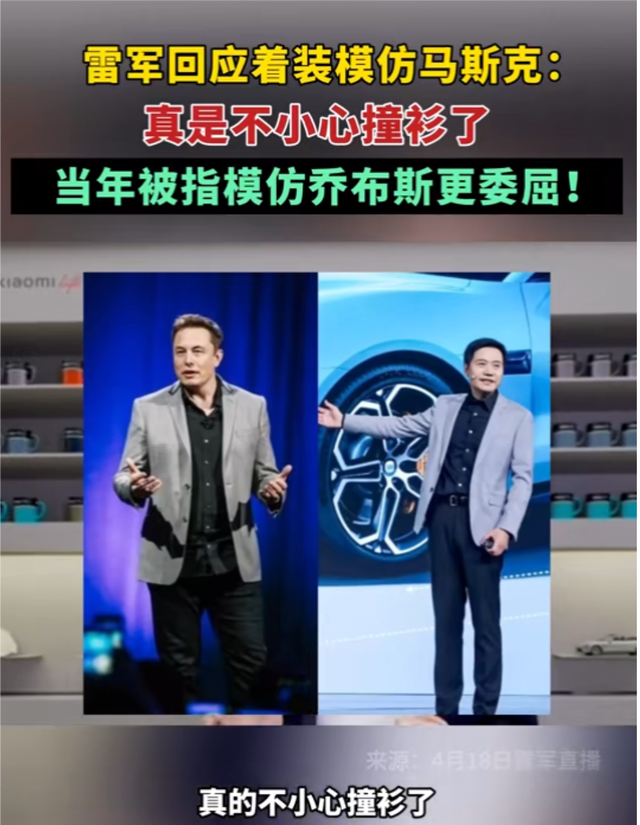 此前市场流传雷军的着装十分用心做手机时模仿乔布斯做汽车时对标马斯克