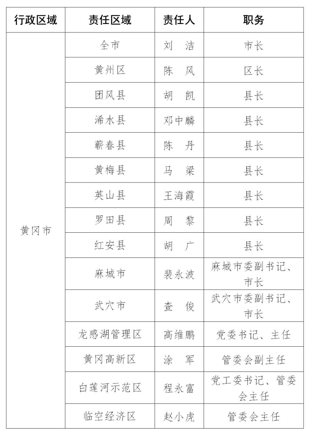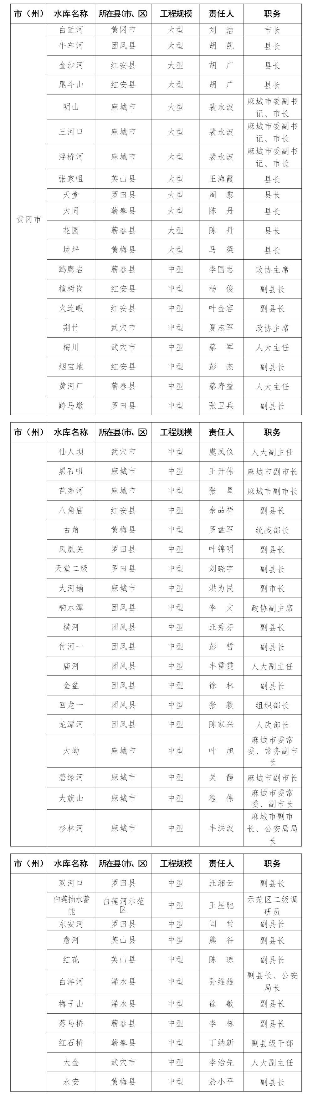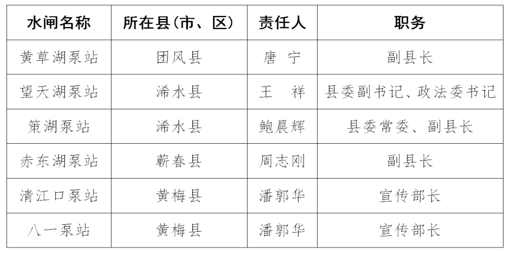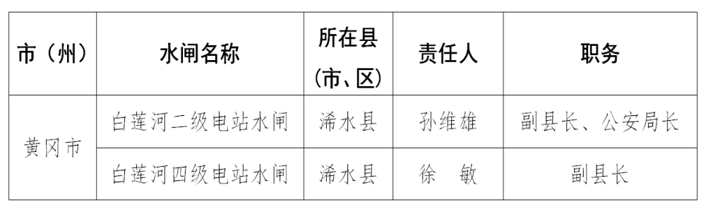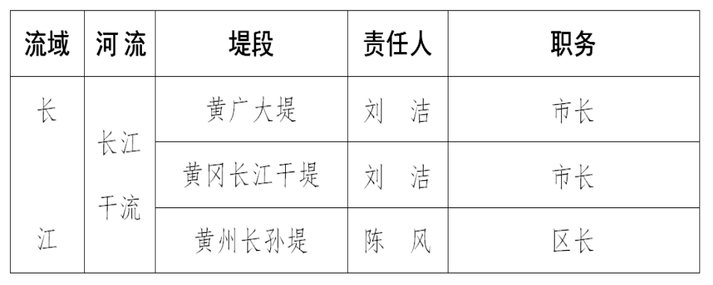 2024年黄冈市防汛抗旱行政责任人