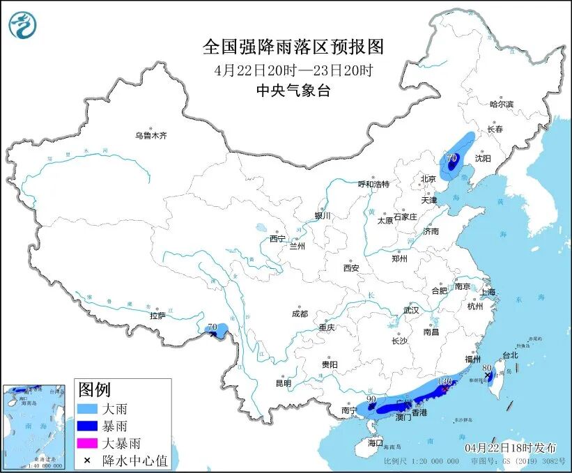 中央气象台22日18时继续发布暴雨黄色预警:预计22日20时至23日20时,广西东南部、广东东部和南部、福建东南部、台湾岛西部以及内蒙古东南部、辽宁西部、河北东北部、西藏东南部等地的部分地区有大雨或暴雨,其中,广东东南部局地有大暴雨。