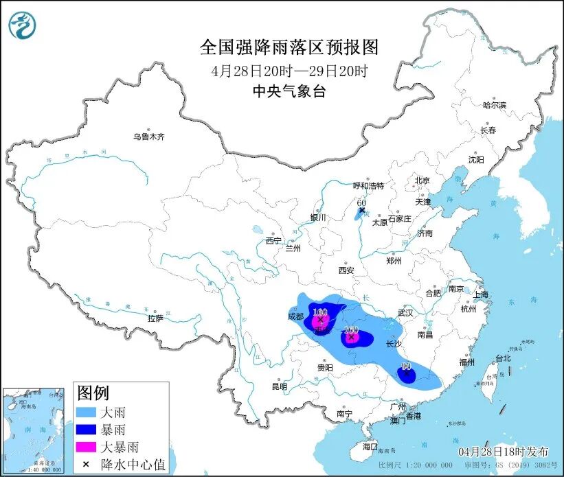 中央气象台28日18时升级发布暴雨黄色预警和强对流天气黄色预警,预计28日夜间至30日,江淮、江南、华南及西南地区东部等地有较强降雨,局地有大暴雨或特大暴雨;甘肃南部、陕西北部、湖南南部、江西南部、福建西南部、四川东南部、重庆南部、贵州中东部、广西北部、广东北部等地的部分地区将有8级以上雷暴大风或冰雹天气。