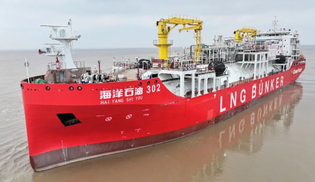 28日,我国首艘江海全域液化天然气运输加注船——“海洋石油302”在江苏启东交付。