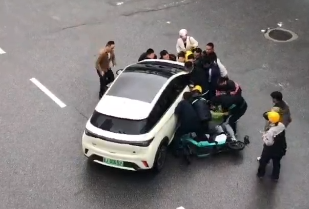 一电动车驾驶员被卷入车底