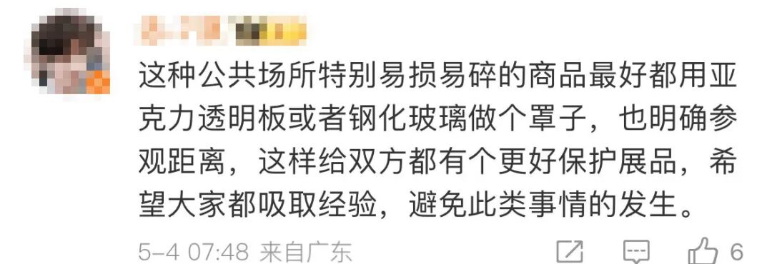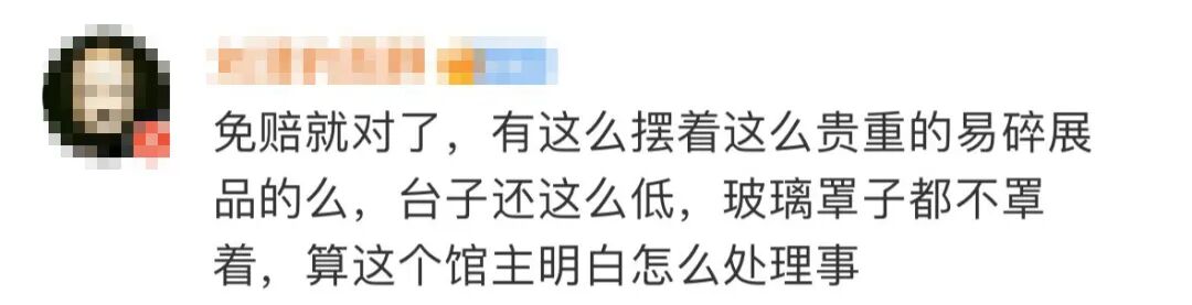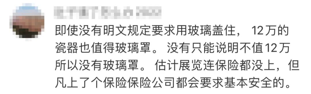 不少网友说易碎展品没有用玻璃罩子,出事了免赔也合理。
