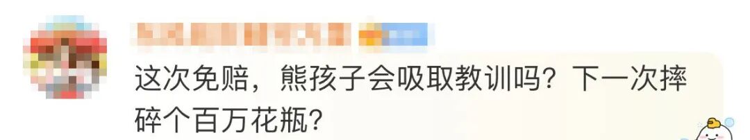 负责人表示:瓶子碎了确实可惜,但孩子确实不是故意的,没碰着孩子就是万幸了,全额免赔!