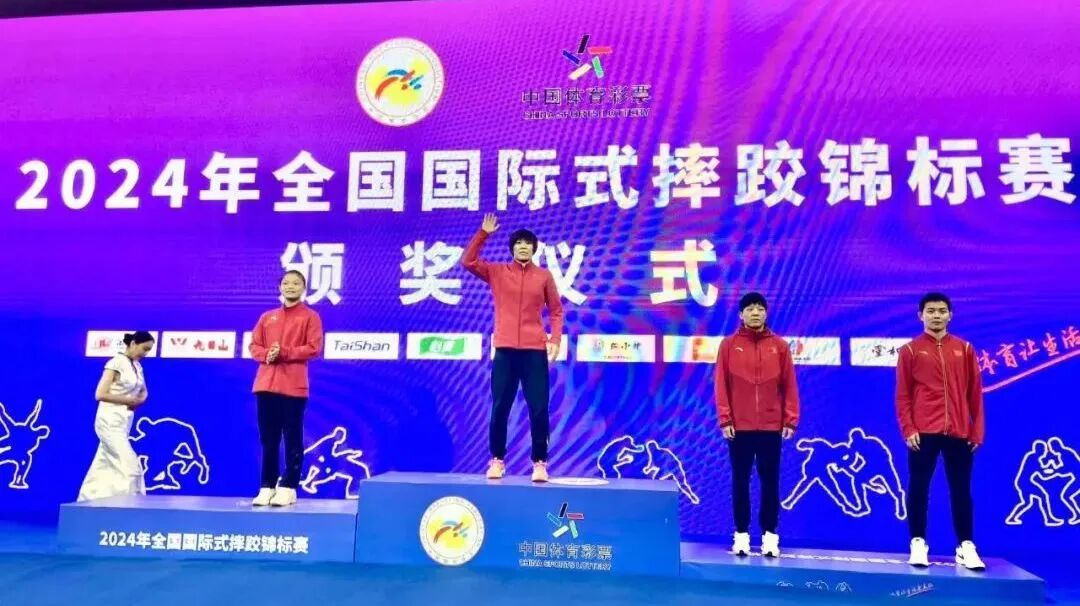 5月5日,2024年全国国际式摔跤锦标赛在温州奥体中心体育馆进行女子57公斤级比赛,我市选手李倩勇夺冠军。