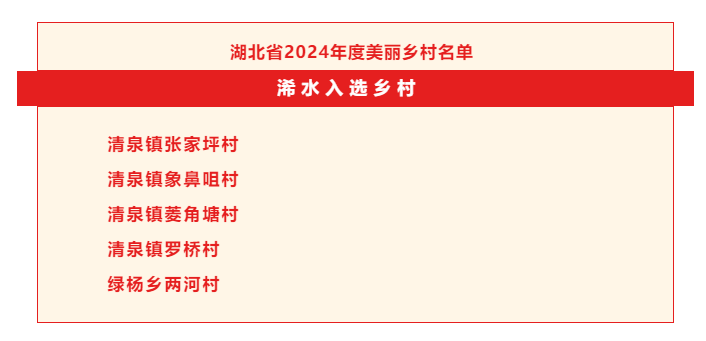 日前,湖北省财政厅公布2024年度美丽乡村名单,浠水县清泉镇、绿杨乡的5个村名列其中。