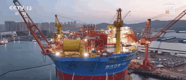 △“海葵一号”装船完成后,将于近日运往珠江口盆地流花油田,安装完成后,每天能处理约5600吨原油。