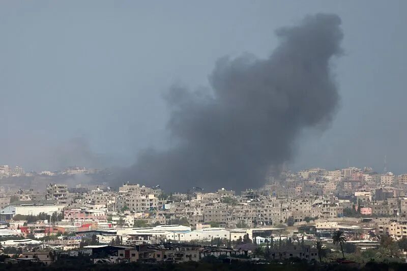 △5月12日,以色列轰炸加沙地带,烟雾滚滚。