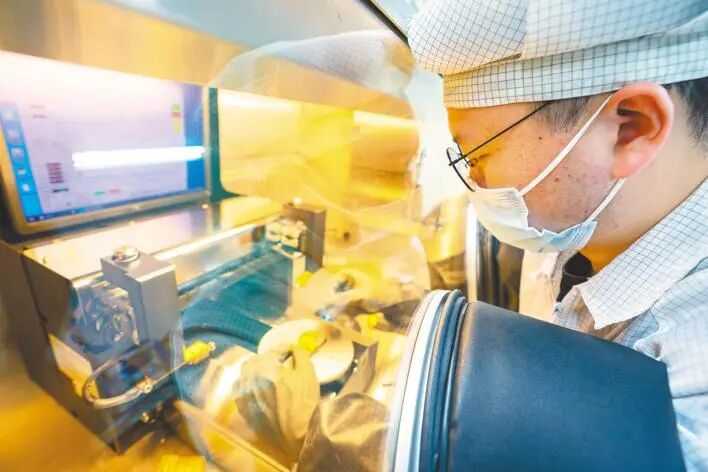 位于光谷的国家信息光电子创新中心无尘实验室内,工程师在操作设备。 (魏铼 摄)