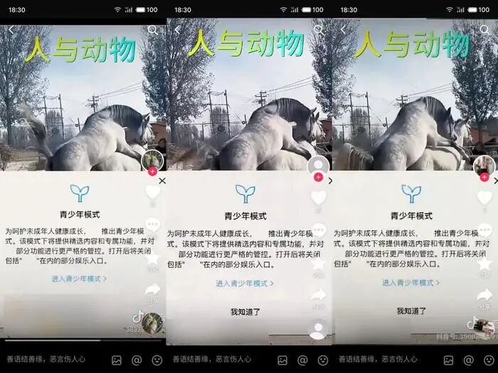 1.骗取点赞类:在画面中设置假的诱导按钮,如“青少年模式”“关闭转账”等,引诱用户多次点击虚假的“关闭”,骗取点赞效果。