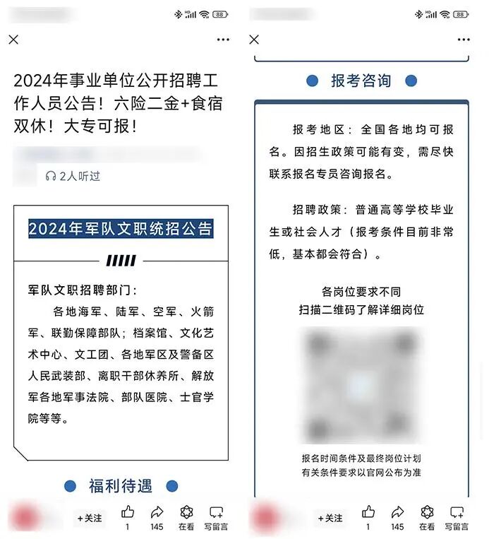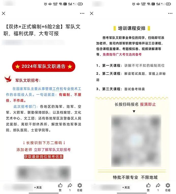 发布虚假招聘类文章假借“用人单位”的名义,打着招聘旗号,声称可以提供工作或“零门槛、高收益”的兼职。实际是通过夸大描述,宣传与实际不符的收益或成果,诱导用户购买相关课程。