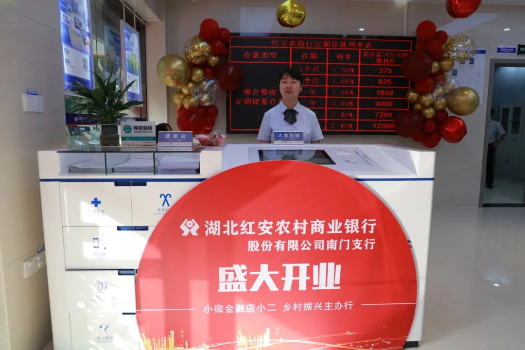 5月14号,红安农商行南门支行举行揭牌仪式并正式营业。装饰一新的营业大厅宽敞明亮,功能分区合理、智能化自助设备配套齐全,网点具备个人储蓄存款业务、对公业务、信贷业务等,受到广大客户欢迎。