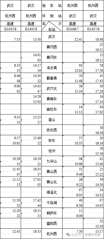 6月15日,铁路部门将进行2024年第三季度调图。届时,武汉-杭州西方向列车(G1435/8、G1437/6、G1445/8、G1446/7)途经黄冈西、黄冈东、浠水南、蕲春南、武穴北、黄梅东站点。