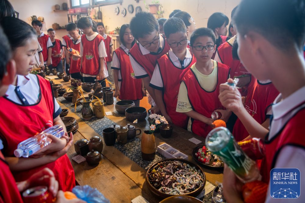 ↑5月25日,学生们在管窑镇“柿外陶园”窑工小院内研学。