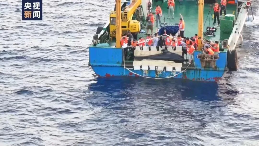 △利洋358科考船抵达放归海域,成功放归短肢领航鲸“海棠”。