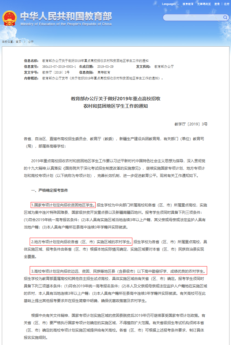 国家专项计划、高校专项计划、地方专项计划并称高考三大计划旨在促进教育公平让更多的学生有机会走出大山接触到优质的教育资源实现自己的人生价值