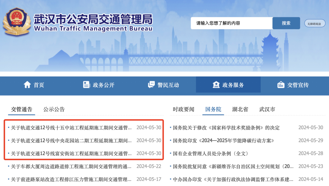 5月30日,武汉市公安局交通管理局发布通告,因轨道交通12号线施工需要,以下路段临时交通管理措施延期。