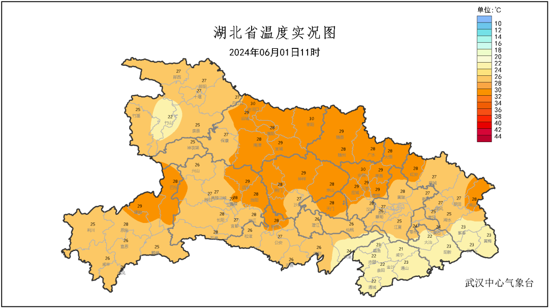 上午11点全省大部气温23~29℃老河口、安陆、枣阳已升至30℃,预计午后省内多地将突破30℃。如选择在户外玩耍,需注意做好防晒工作。