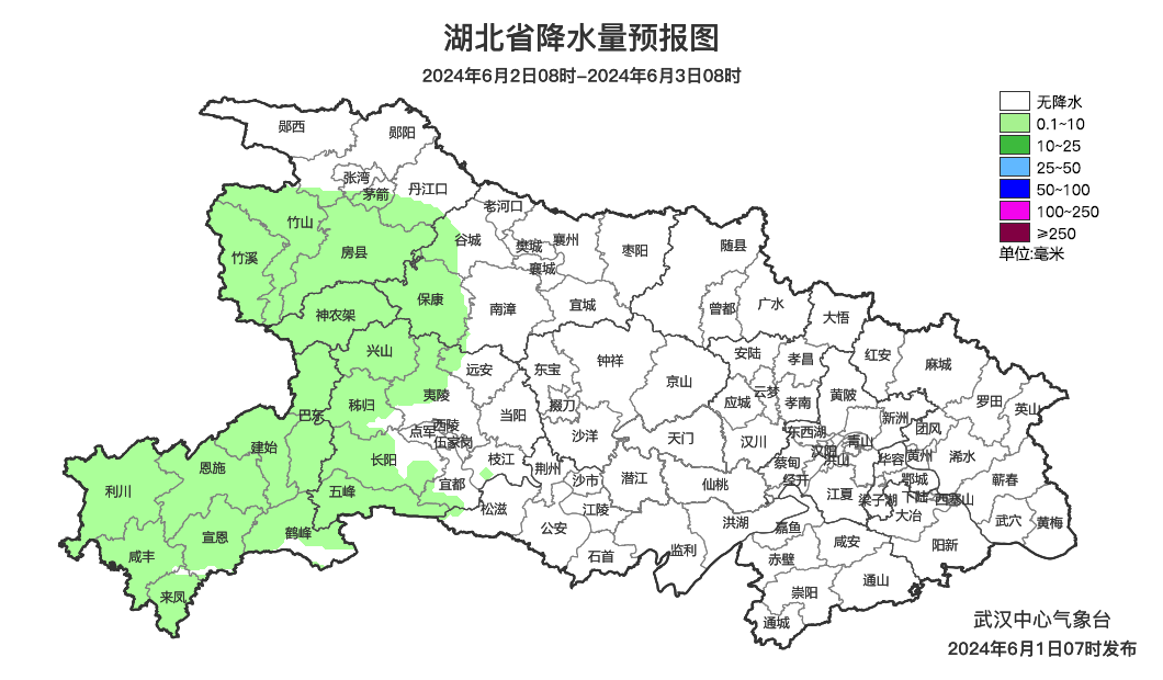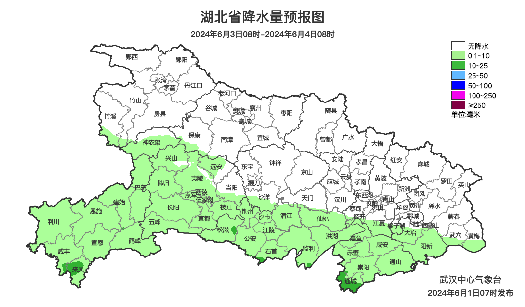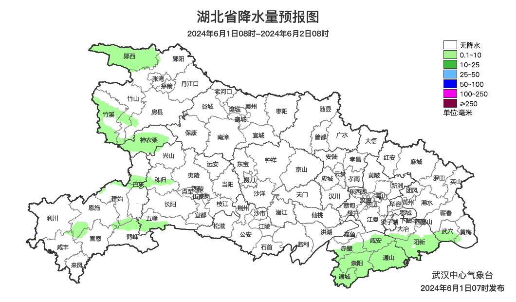 预报来源:武汉中心气象台2024年6月1日08时预报