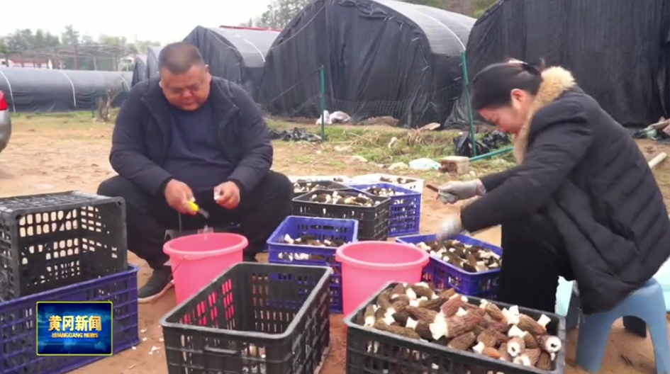 在英山闻家冲村羊肚菌的种植基地里,大棚内的羊肚菌错落分布,一朵朵形态可爱的羊肚菌争相破土而出,撑起褐色的“小伞”,菌株肉厚而修长,密密麻麻地分布在菌床上,基地负责的姐弟俩正在对刚刚采摘的几大筐羊肚菌进行分拣。