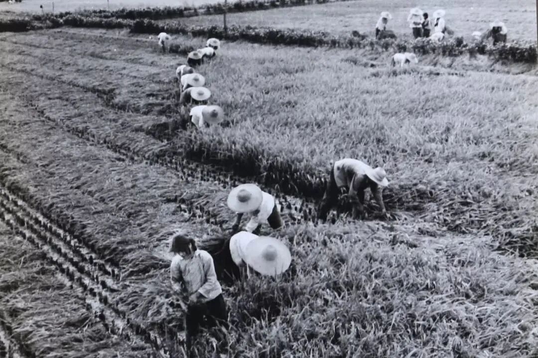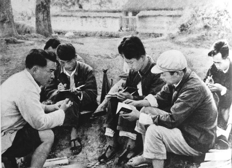 红安干部在田埂边开会,解决夏收和秋播的问题