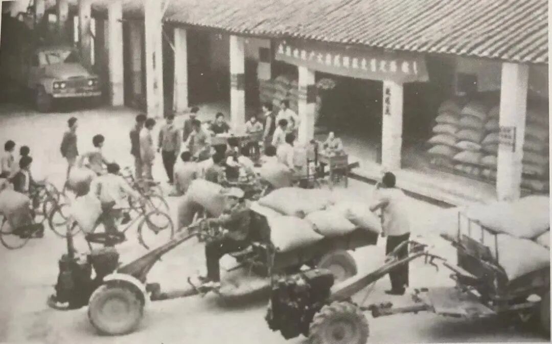 ▲实行家庭联产承包责任制后,农民踊跃交公粮。