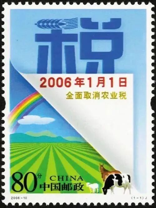 ▲国家邮政局发行“全面取消农业税”纪念邮票